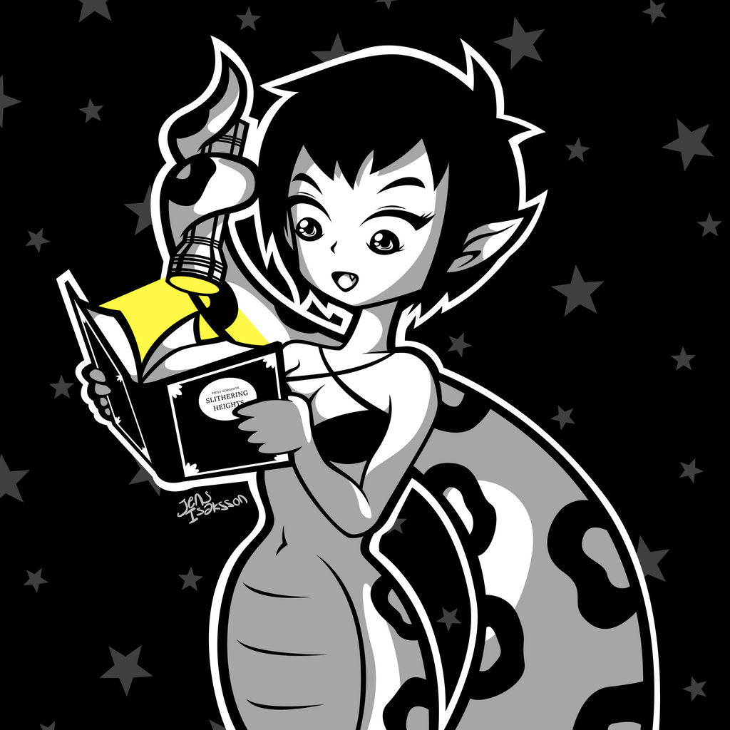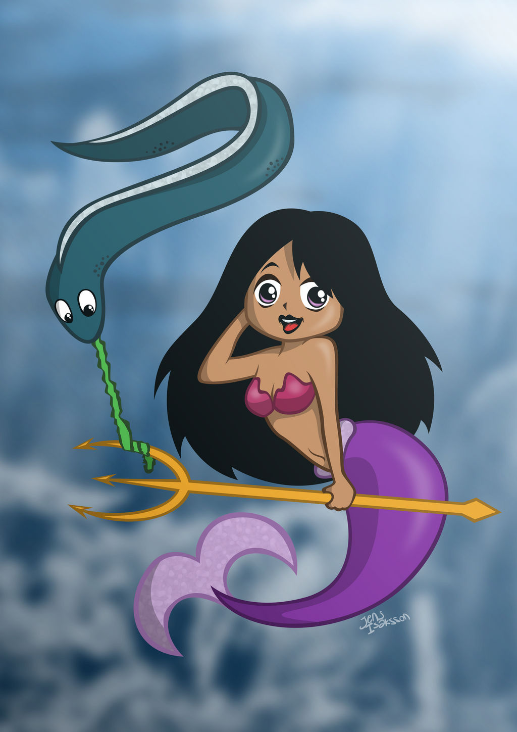 This one is cute. I like the colors she used for the mermaid and for the eel. They both fit with the image in the background, so he knows how to manage color. And well, in my opinion! I'm curious as to what the eel is doing--it looks like it's wrapping the point. It's pretty interesting, in my opinion...that, or it could be eating some seaweed off it!